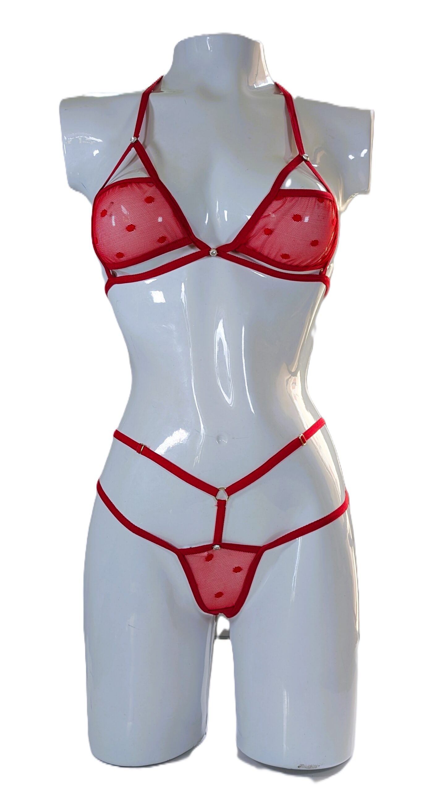 | Incluye | Bralette con tiras para anudar en espalda y cuello; panty con abertura en la entrepierna y tiras ajustables. |